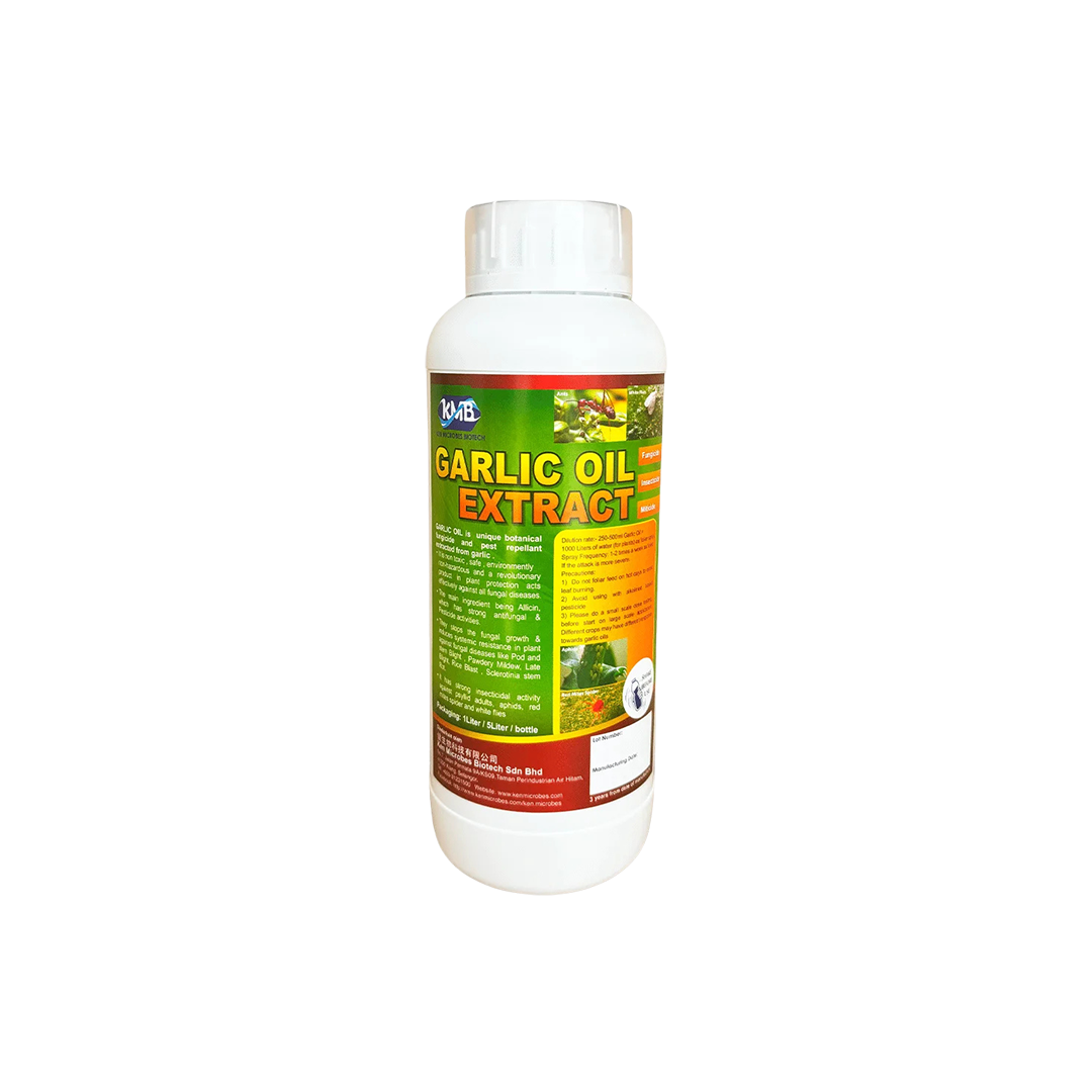 Can repel thrips, whitefly, aphids, red spiders, termites, etc. Has the ability to kill insects directly in high concentrations. Garlic oil has good antibacterial effects, which can inhibit bacteria, fungi, viruses, etc. It can also inhibit the growth of moss (algae)