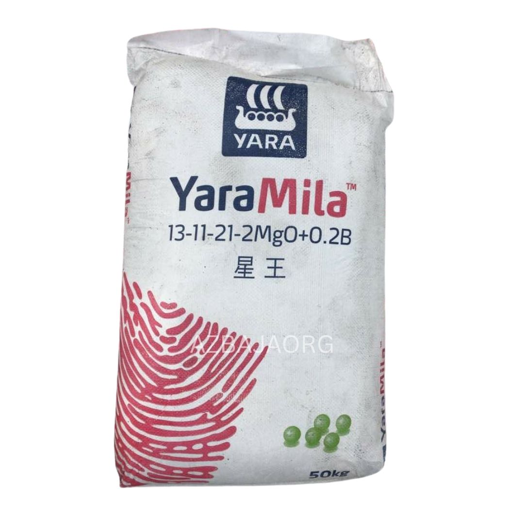 YaraMila 13-11-21+2MgO+0.2B is a high-quality, prilled compound fertilizer, commonly referred to as fruit fertilizer, designed for balanced crop nutrition. It contains essential nutrients, including nitrogen (13%), phosphorus (11%), potassium (21%), magnesium (2%), and boron (0.2%), which promote rapid growth, high yield, and enhanced fruit quality.